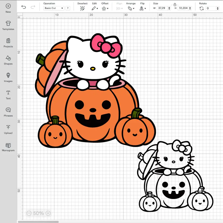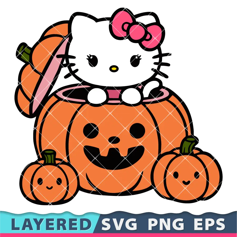 Celebrate Halloween with this adorable Hello Kitty design featuring her inside a pumpkin! This high-quality SVG and PNG file is perfect for Cricut projects, party decorations, or personalized gifts. Its festive theme and versatility make it a must-have for your seasonal creations. Start crafting your unique Halloween designs now!